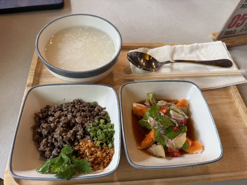 按摩店附近偶遇的一家小酒馆(说他是酒馆但我其实是白天来的),只点了一份泰式早餐(280铢),白粥配肉粒和凉菜,意外的还不错,但也完全没必要单独来
